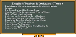 1. Basic English Grammar Topics and Tests- Basic terms like noun, pronoun, adjective, verbs, adverbs, etc.