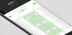 ▸ Ruler: By means of a slider, the values of pressure, dew and boiling (bubble) temperatures (temperature glide resulting from the difference) for the selected refrigerant can be determined. Pressure and temperature values can also be entered manually - either by tapping on the respective field or via the symbol "123". When installing the app overpressure values are preset. With this setting, the atmospheric pressure can be entered either manually on the upper ruler or via the "barometer symbol" to correct the pressure values. A change to absolute pressure values is possible under "Settings", the atmospheric pressure correction is then inactive. Further function: By tapping on the refrigerant name, direct access to "Search" (refrigerant list and search filters) is also possible.