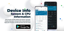 Device Info is a simple and powerful Android application that gives you complete information about your mobile device with advanced user interfaces and widgets. For example, device Info/ phone Info includes information about CPU, RAM, OS, Sensors, Storage, Battery, SIM, Bluetooth, Network, Installed Apps, System Apps, Display, Camera, Thermal, etc. Also, device Info/ phone Info can benchmark your device with hardware tests.