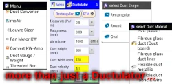 - built-in Duct Converter, rhoAIR, Louvre Sizer, Fan Motor kW, Convert KW-Amp, Duct gauge/weight, Threaded rod hanger sizing, txt file Viewer, Hello! Condensation.